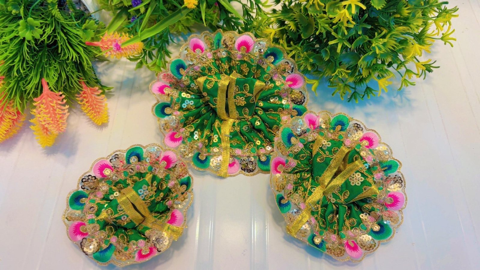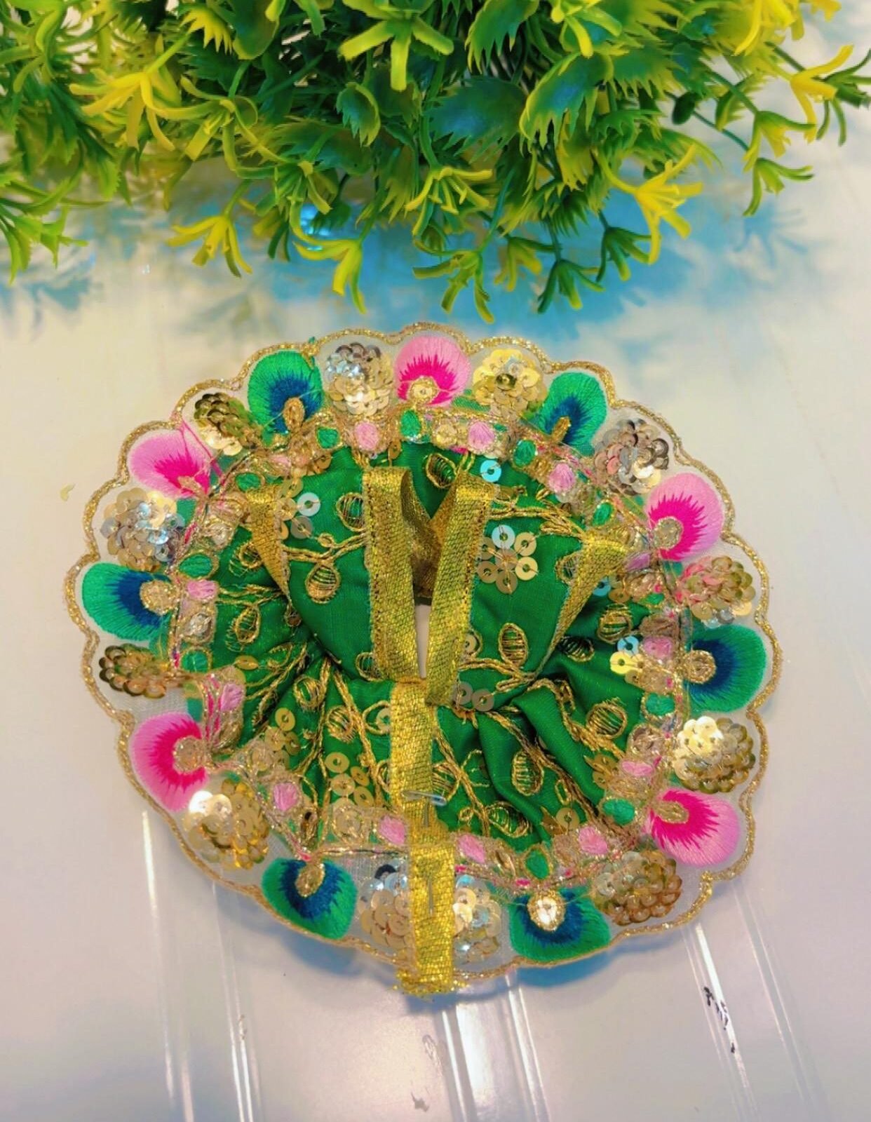 Designed with care and devotion, the dress fits perfectly and enhances the beauty of your deity idol. Whether it’s for your home mandir or gifting, this festive dress brings blessings, color, and divine grace to every corner.