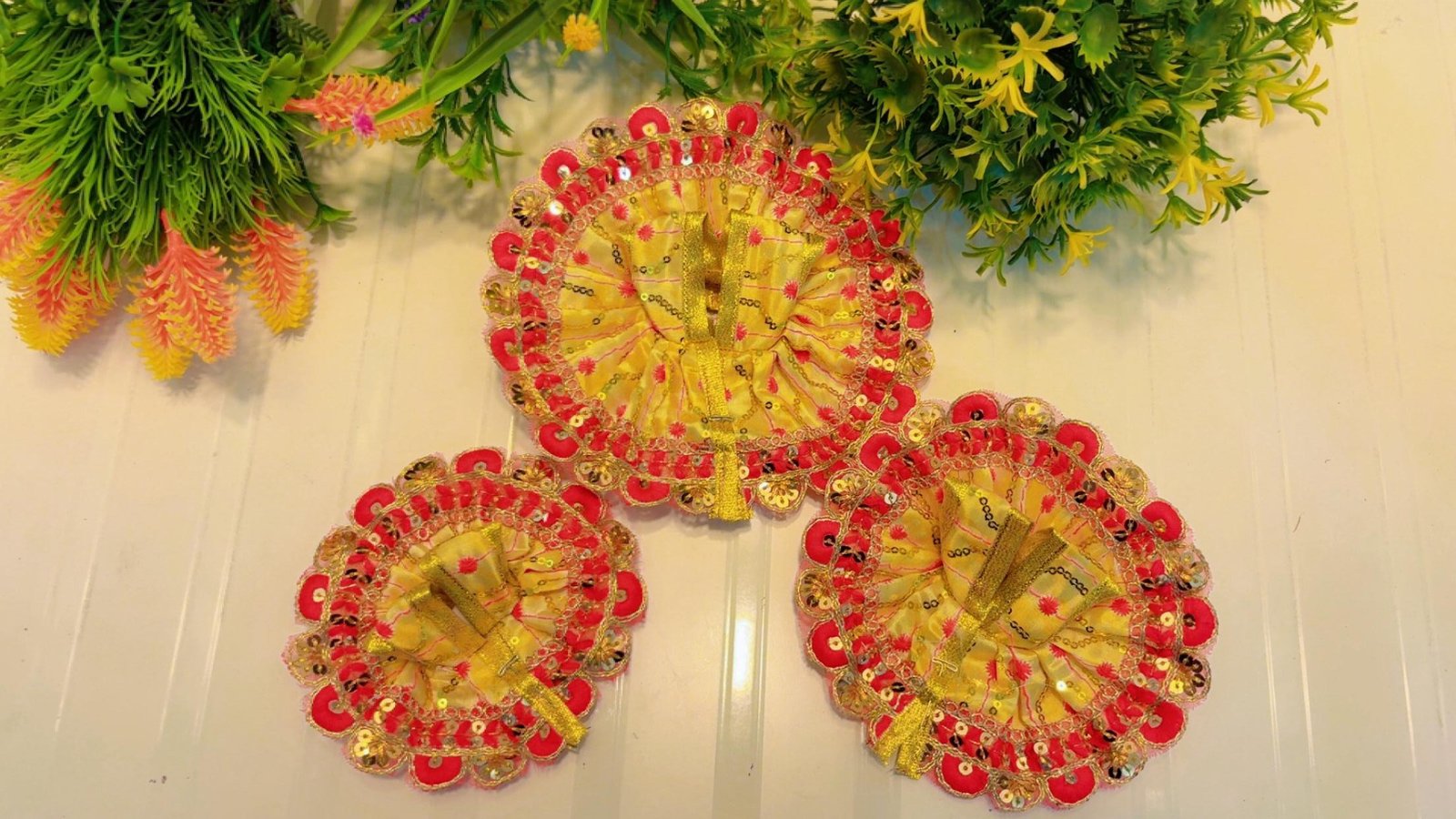 Dress your beloved Laddu Gopal Ji with grace and devotion! Our Designer Laddu Gopal Dress are specially handcrafted with soft fabric, vibrant colors, intricate embroidery, and delicate lace borders to give your Bal Gopal a royal look.